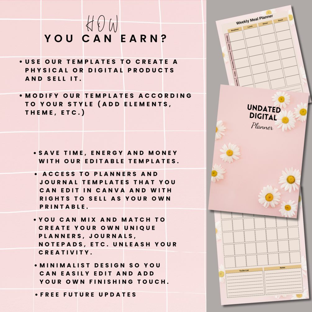 PLR Undated Planner Template | Rights to Resell | Editable in Canva